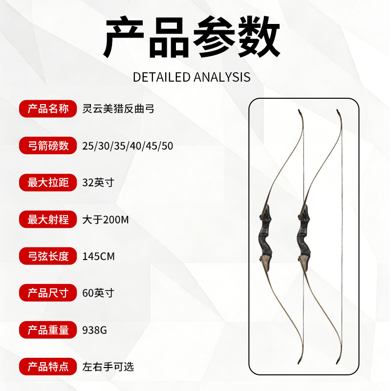 📚 灵云弓箭野外反曲弓新手入门层压弓片射箭套装传统美猎灵云反曲弓