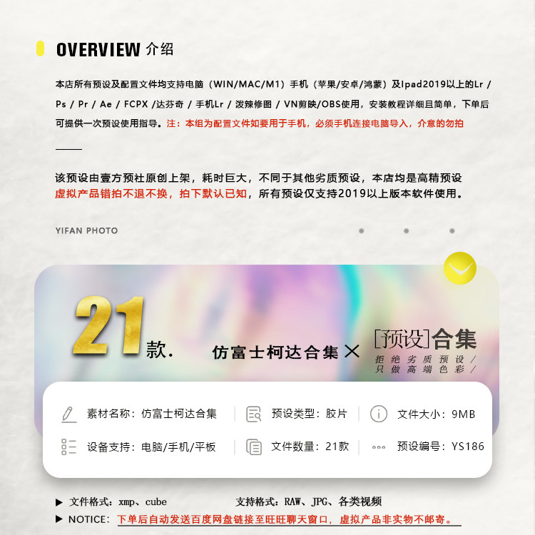 📚 像素蛋糕预设仿富士柯达配置文件21款手机LR/飞思/PR滤镜/PS调色