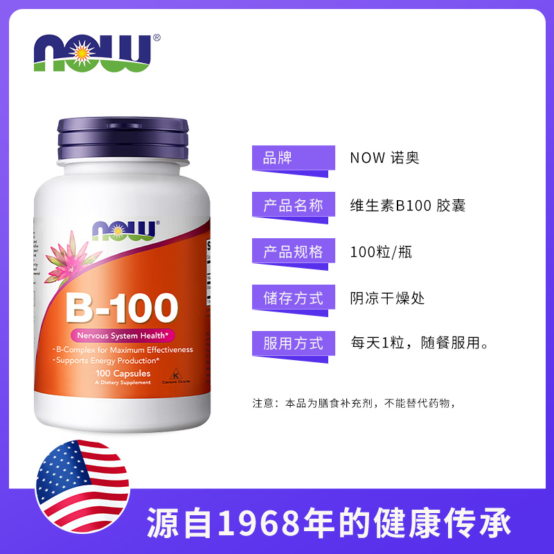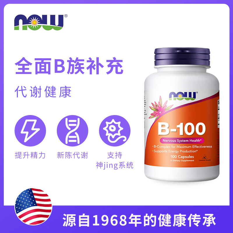 📚 美国诺奥Now Foods复合维生素B族B100胶囊VB群B2/B6/B12营养神经