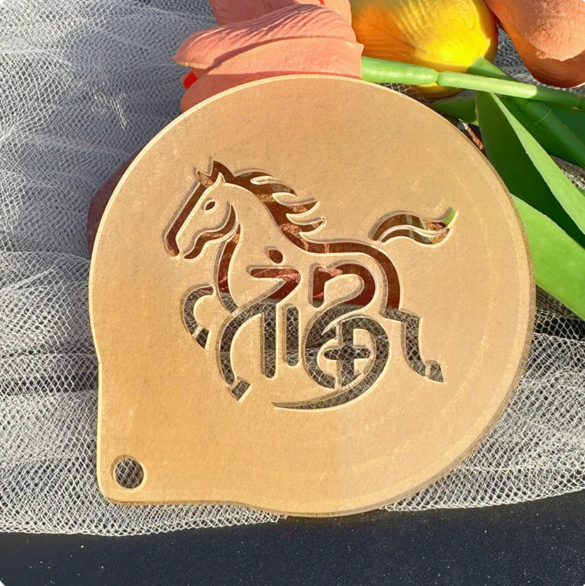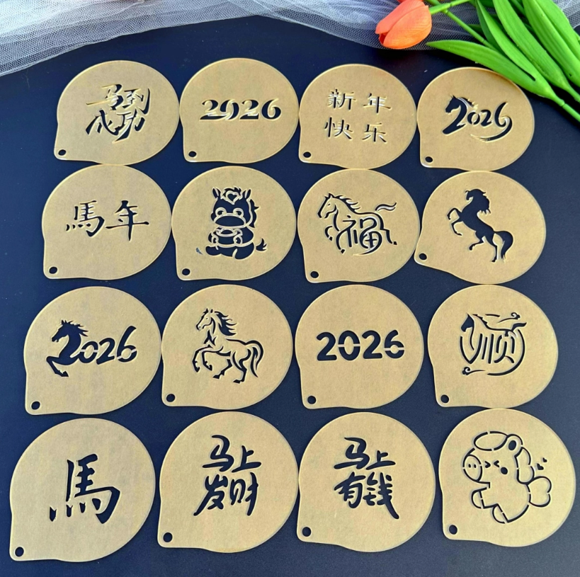 📚 2026新款马年大吉祝福文字欢喜烘焙模具咖啡拉花神器蛋糕撒粉模具