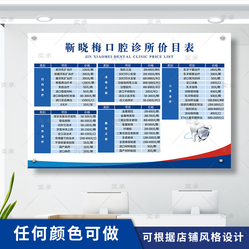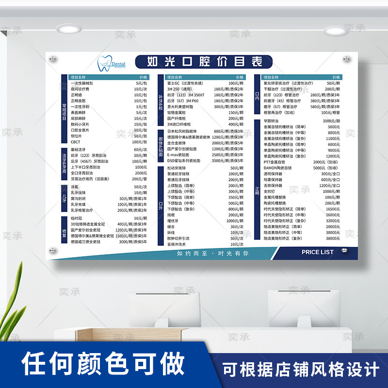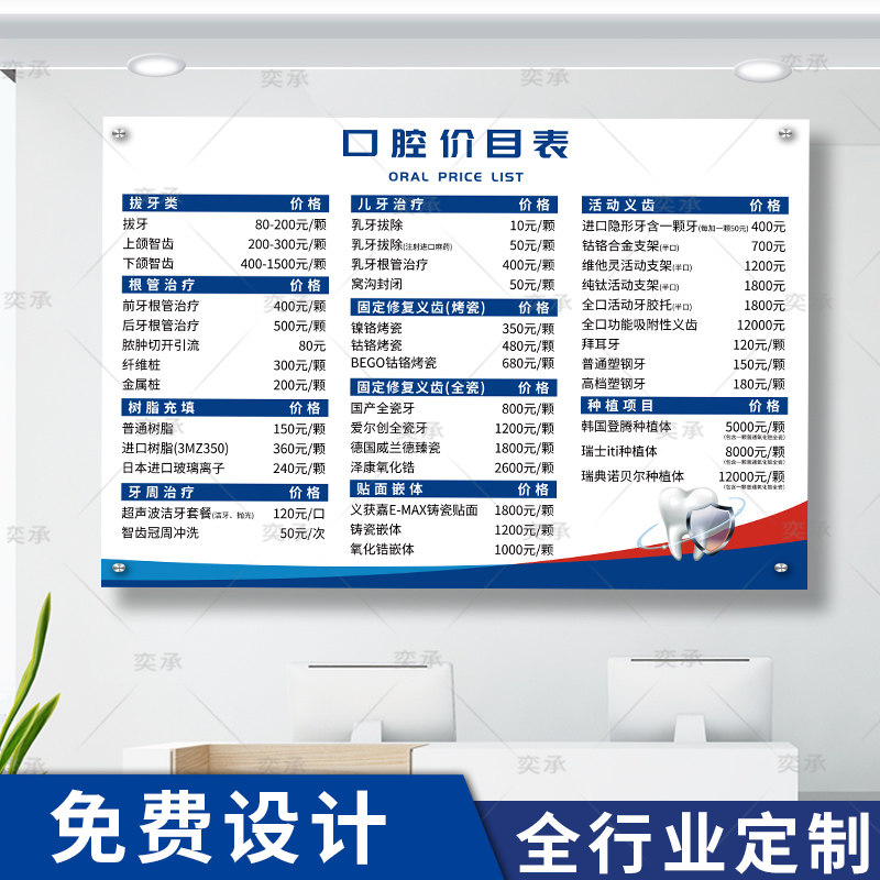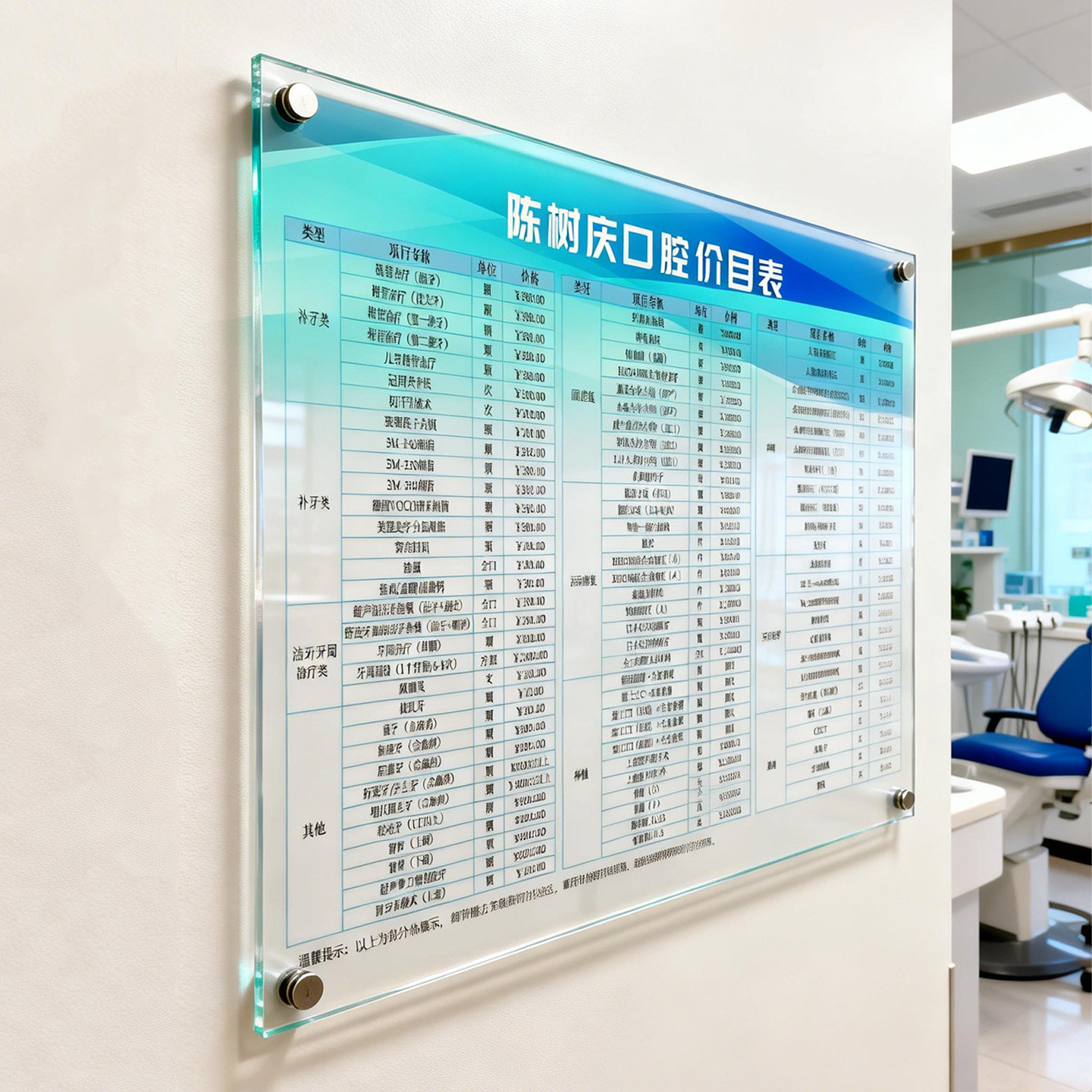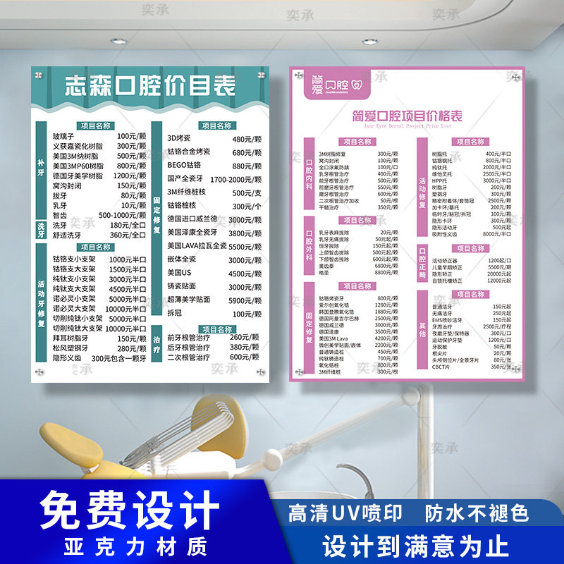 📚 口腔价目表设计定制种植牙科诊所价格表亚克力收费标准公示牌挂墙