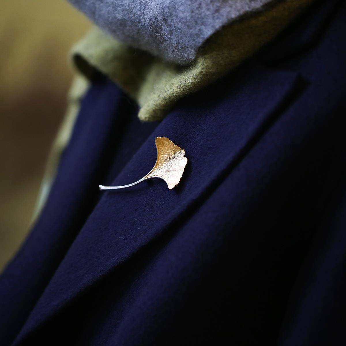 📚 中国风S925银杏叶胸针手工文艺简约气质毛衣西装别针配饰百搭时尚