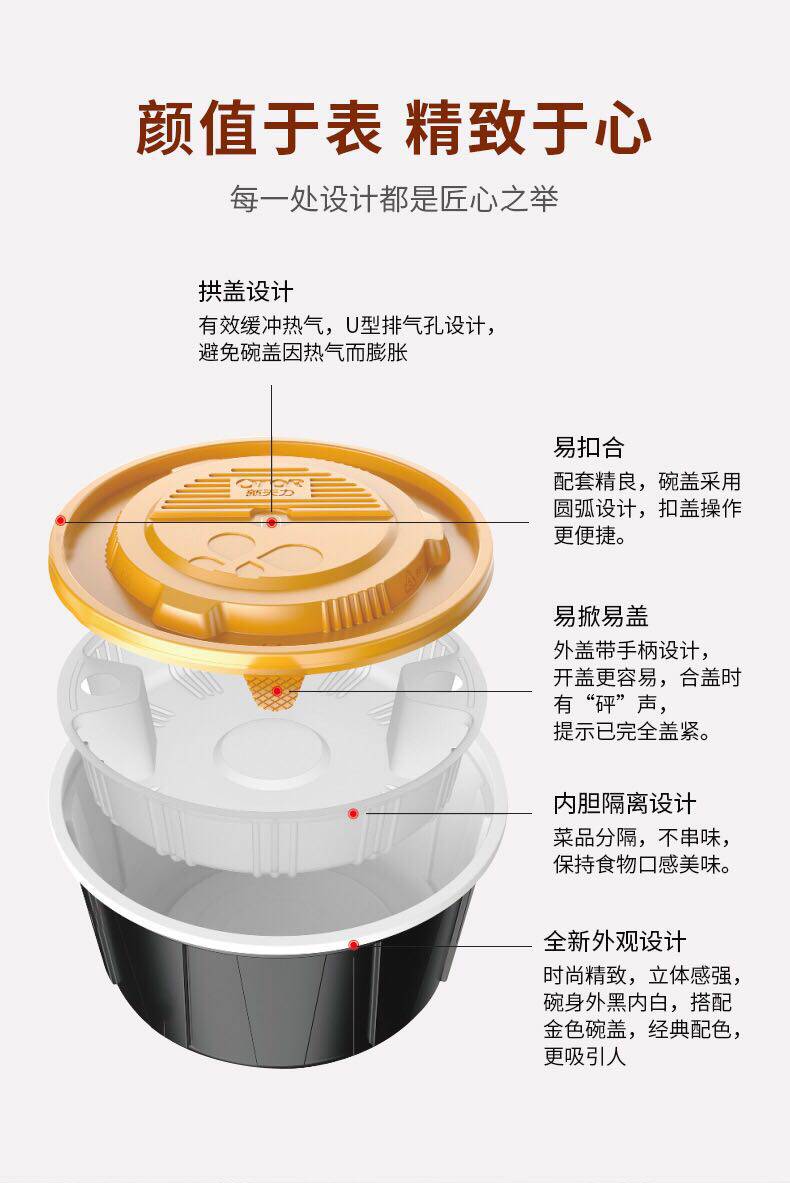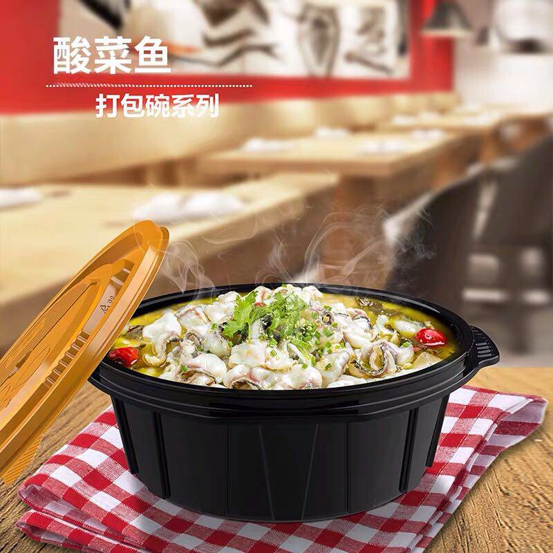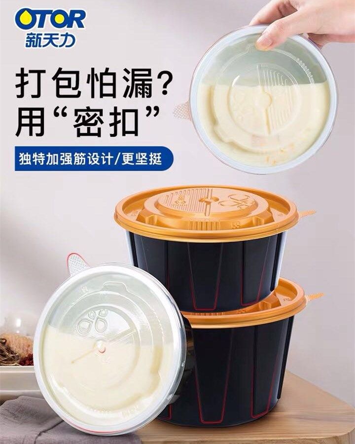 📚 新天力黑金打包碗一次性加厚圆形带盖黑色美式塑料保鲜饭盒可微波