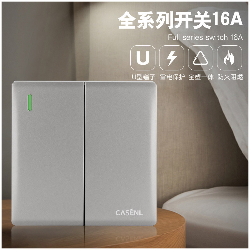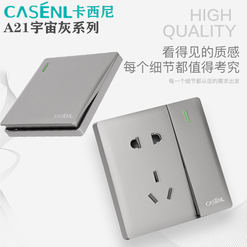 📚 casenl卡西尼A21银灰色开关插座面板双控多孔16A二三插双控工程