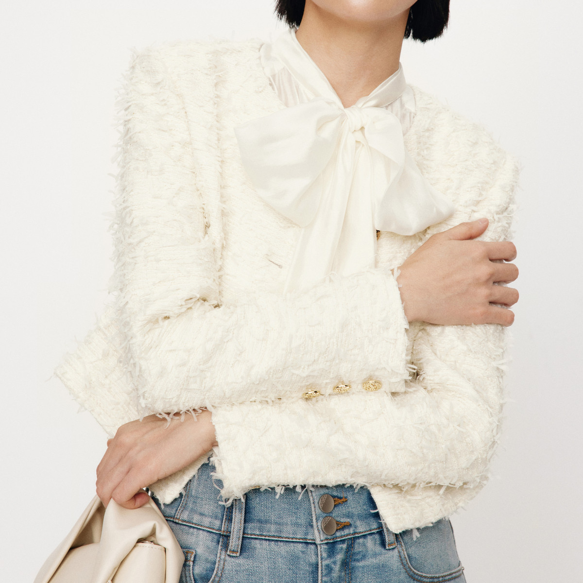📚 艾诺丝雅诗 小香风短款小个子粗花呢外套女冬季长袖开衫30931077