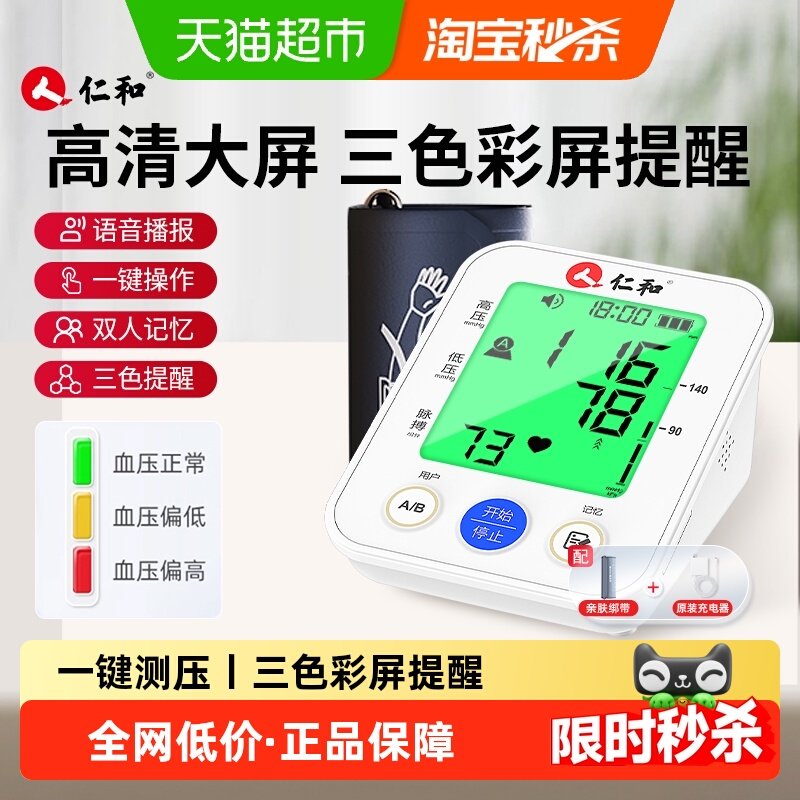 📚 仁和电子血压计血压家用测量仪器高精准家用正品医院专用国家补贴