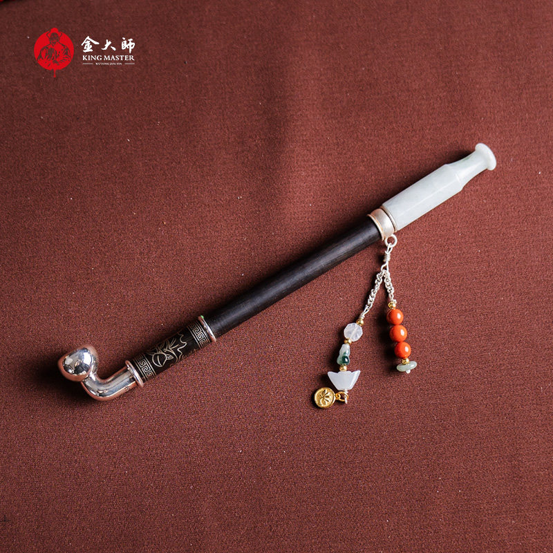 📚 金大师三元九运小旱烟袋乌铜走银烟具正品礼盒装烟斗仿古