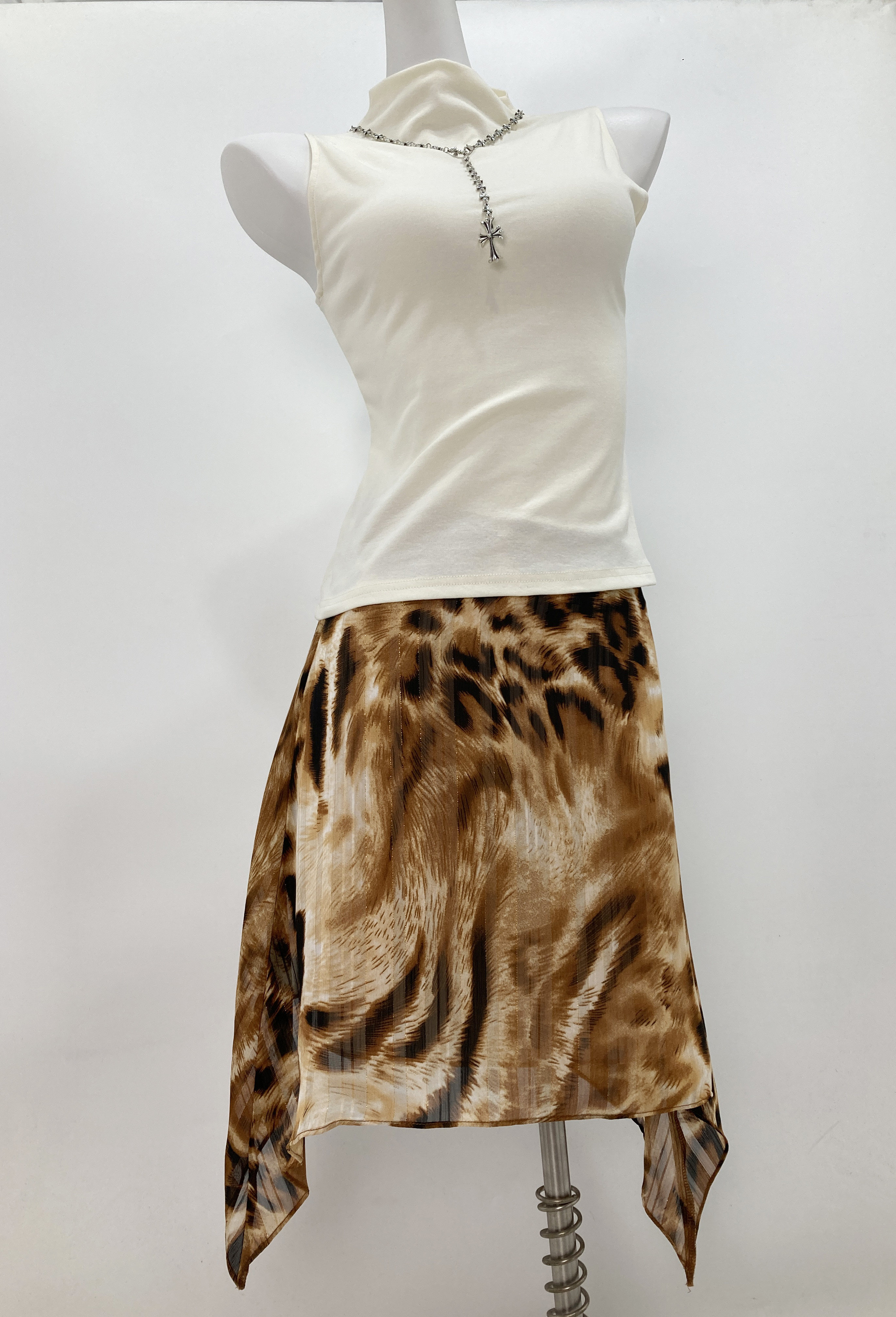 📚 西子瓦早古早韩复古辣妹vintage嬉皮士薄款印花虎豹纹雪纺半身裙