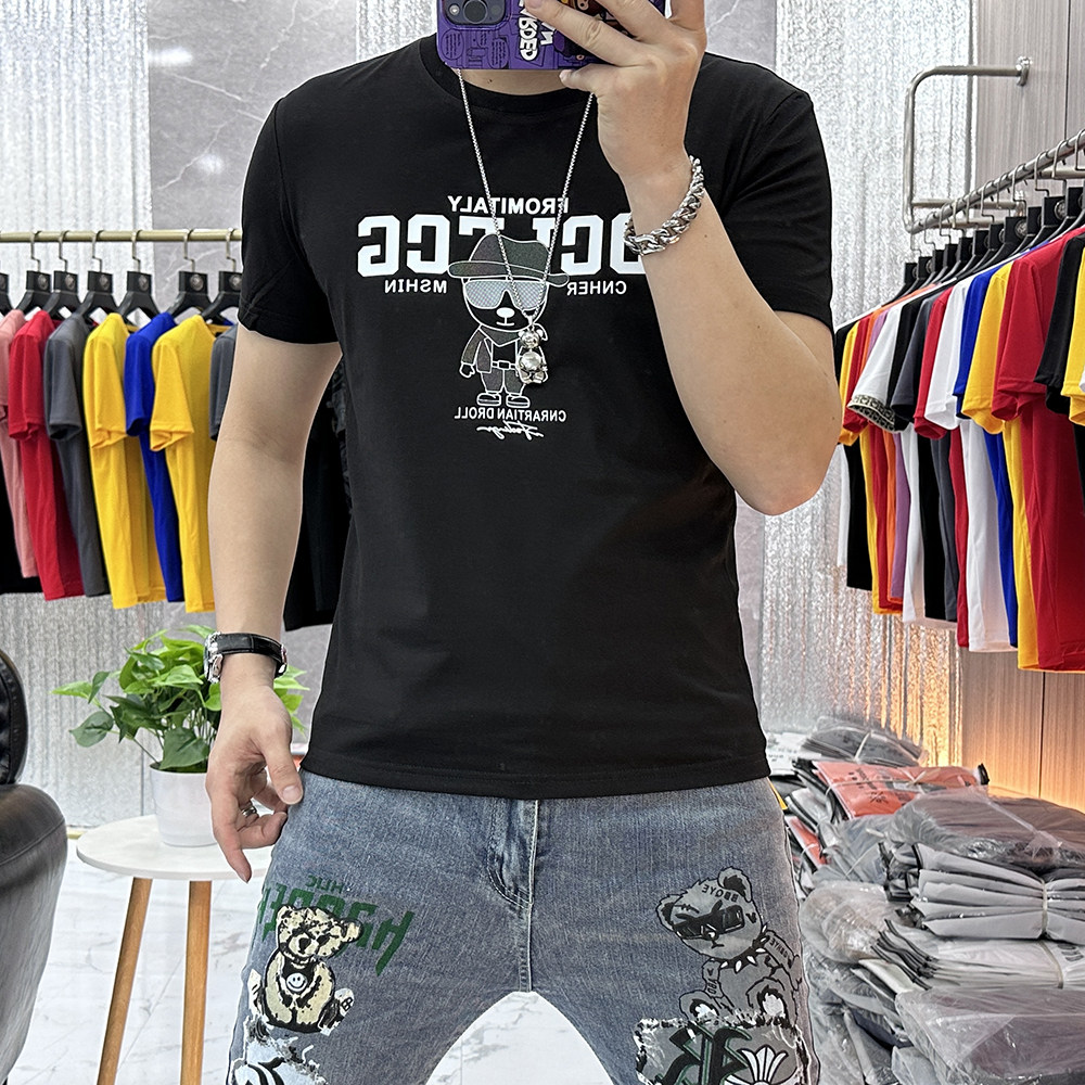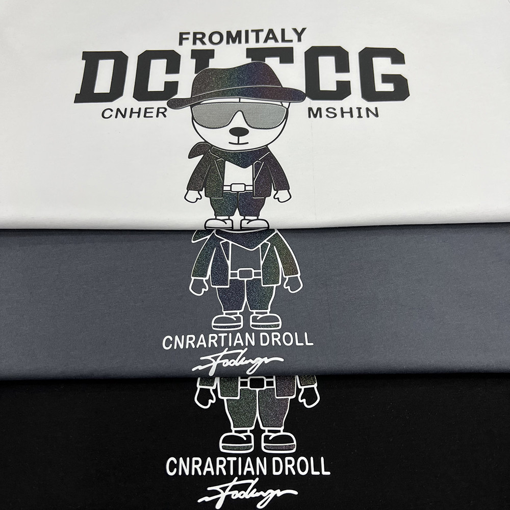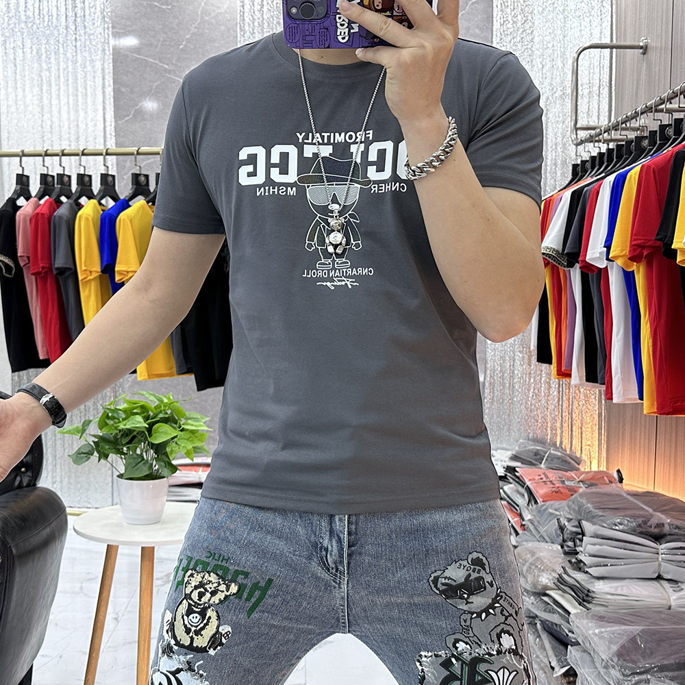 📚 夏季短袖T恤男士渐变色卡通印花圆领半袖体恤丝光棉上衣潮牌百搭
