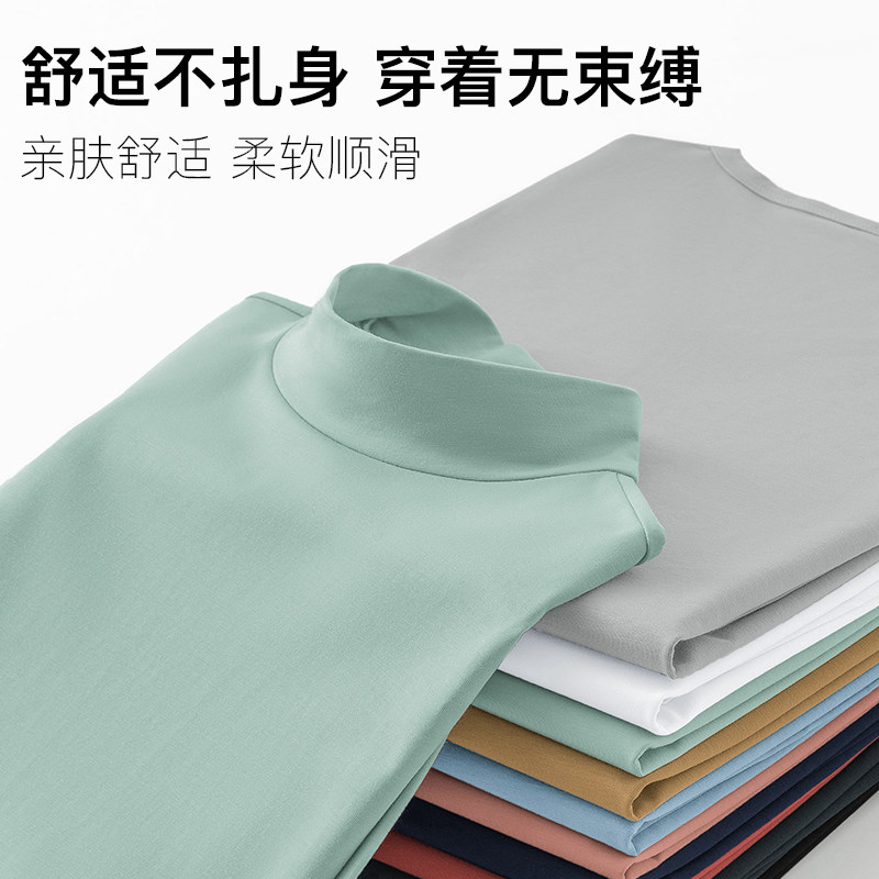 📚 莫代尔长袖t恤男纯色半高领打底衫抗菌防螨秋冬内搭中领体恤小衫