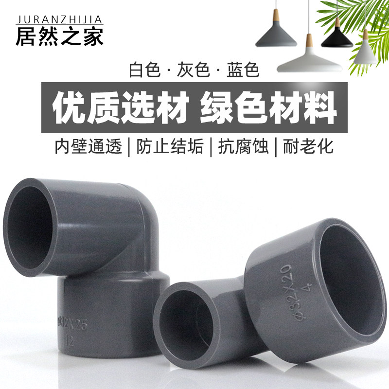 📚 PVC水管异径变径大小弯头管件25 32 40 50 63 75 90 110mm白灰蓝