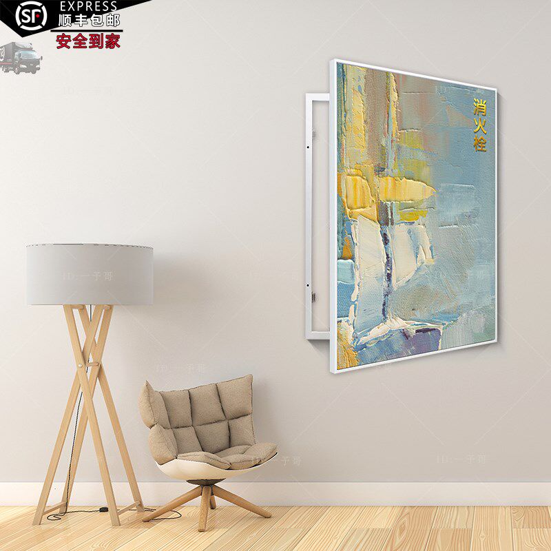 📚 油画质感强弱电箱实木底框遮挡挂画多媒体抽象装饰画消防栓色块画