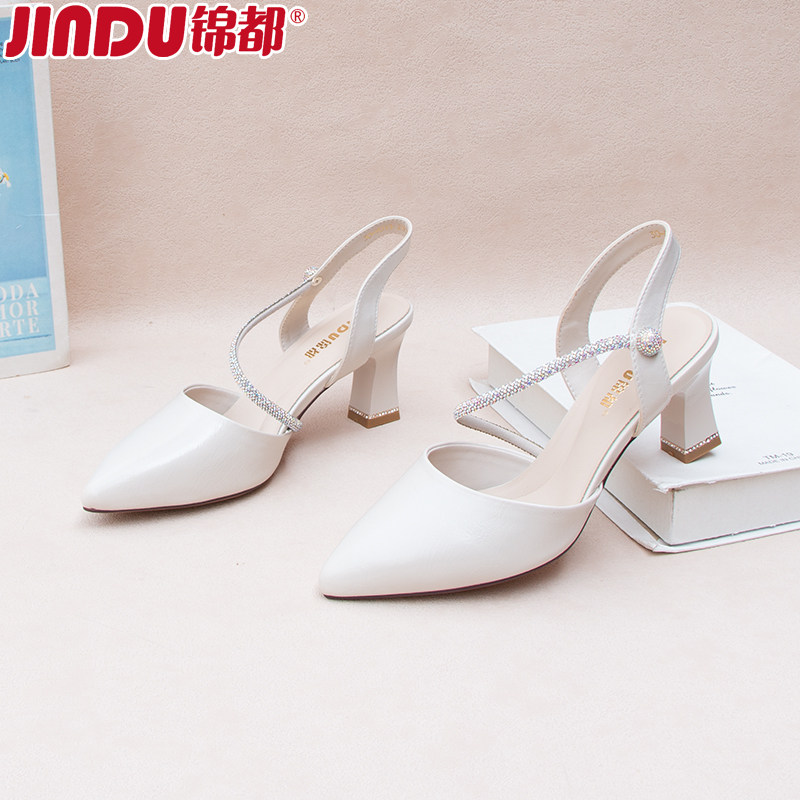 📚 锦都高跟凉鞋女2025新款夏季尖头性感不累脚一字带细跟水钻高跟鞋