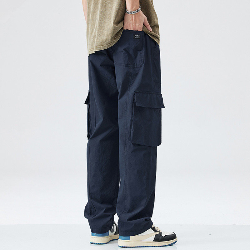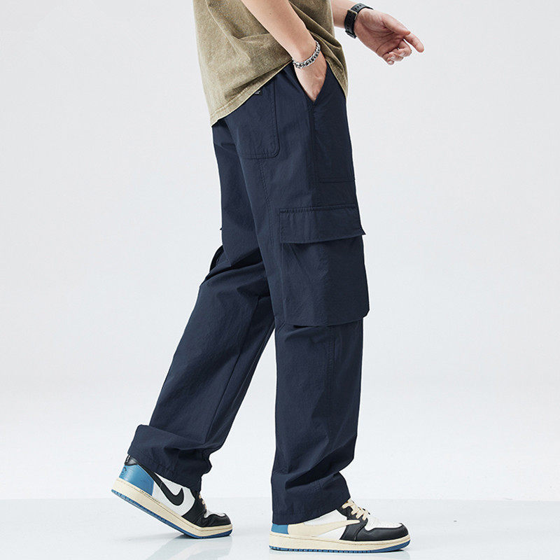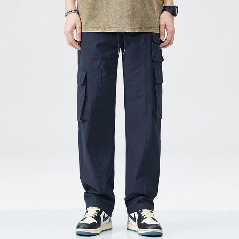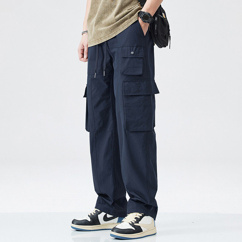 📚 潮牌薄款户外系绳休闲裤男宽松直筒运动男士裤子多口袋工装裤男款