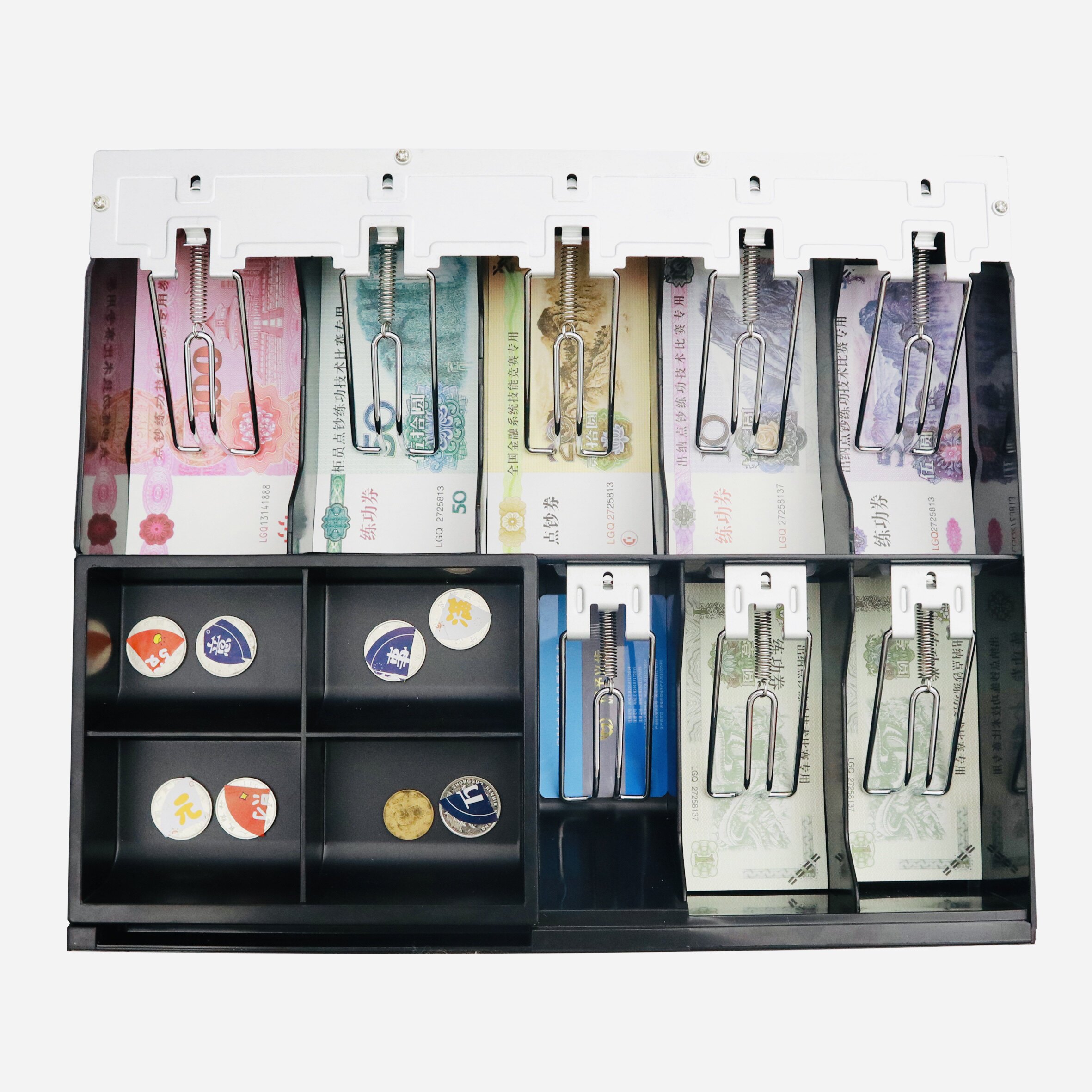 📚 无盖子无锁收银盒港币现金收银抽屉桌面收纳零钱纸币分类钱格简易