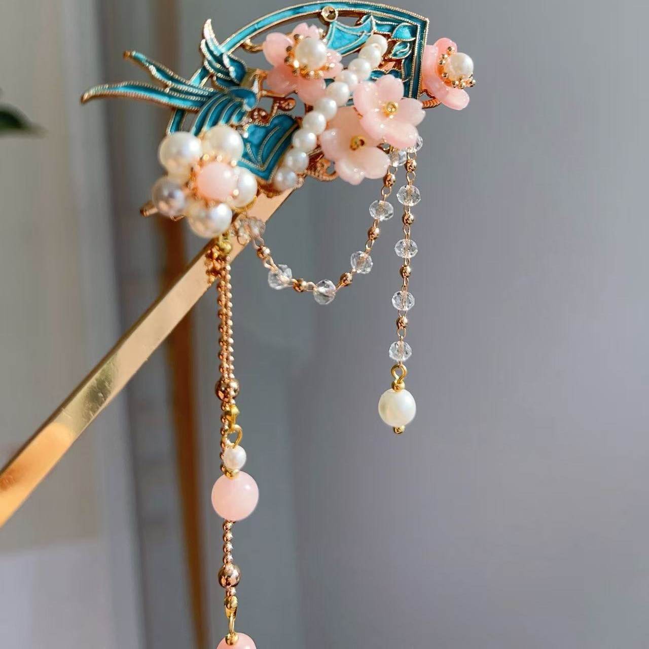 📚 风晚林原创手工古风饰品日常汉服盘发搭配长流苏步摇发夹对夹发饰