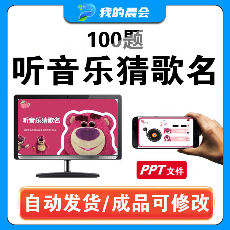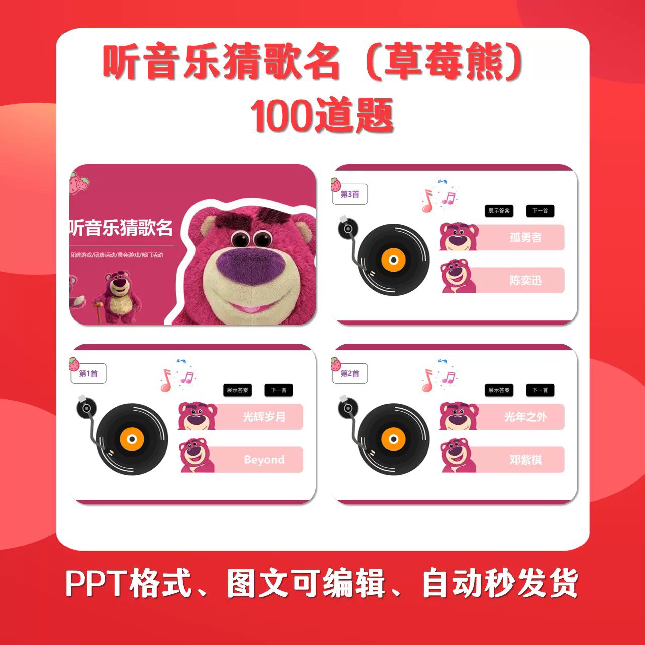 📚 听音乐猜歌名游戏PPT草莓熊主题团建大屏互动晨会课堂婚礼暖场