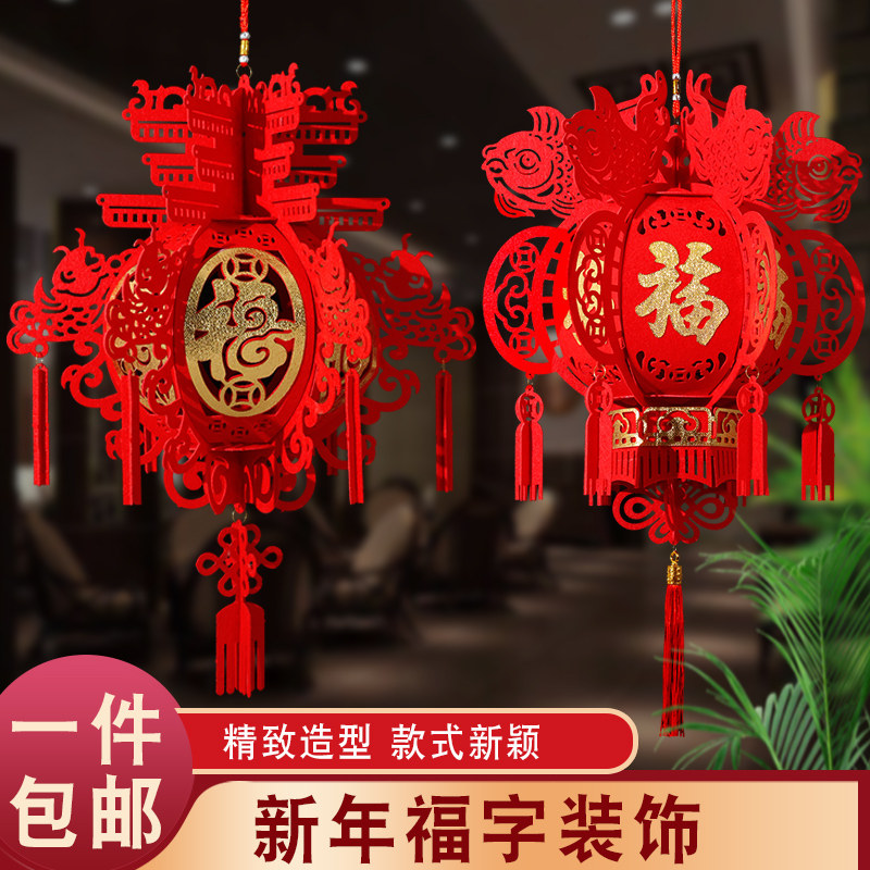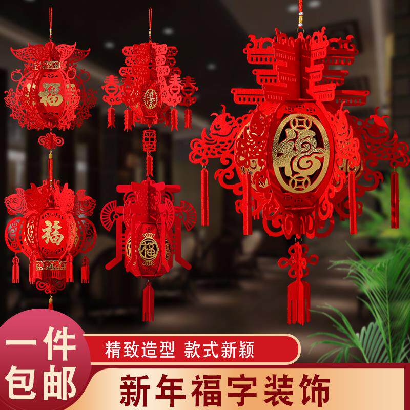 📚 新年福字不织布小灯笼挂饰大红色宫灯春节元旦布置商场柜台装饰挂