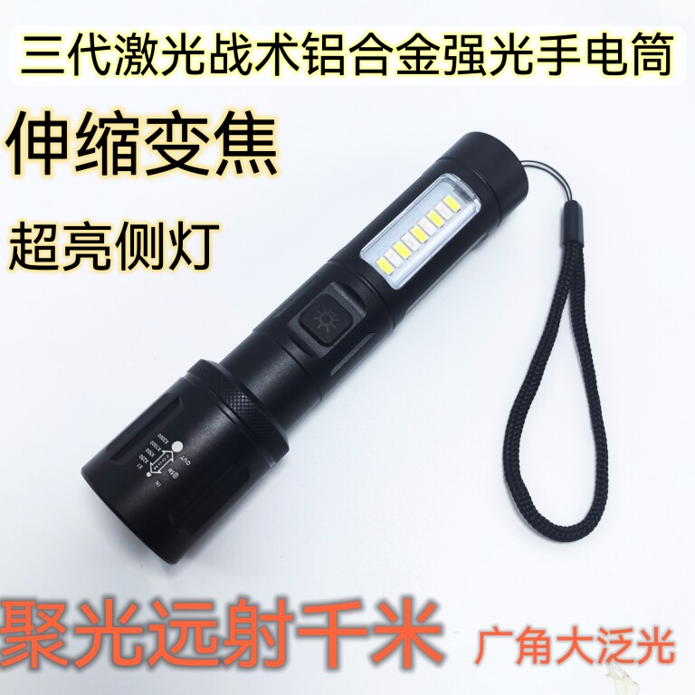 📚 夜平安强光手电筒远射千米伸缩变焦钓鱼充电超亮铝合金巡逻安保