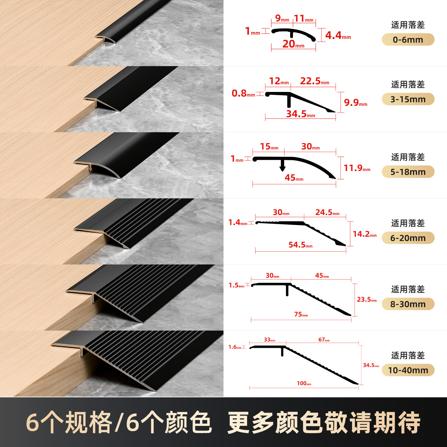 📚 铝合金高低扣门槛压边条瓷砖斜坡小落差地板压边条接缝条收边条