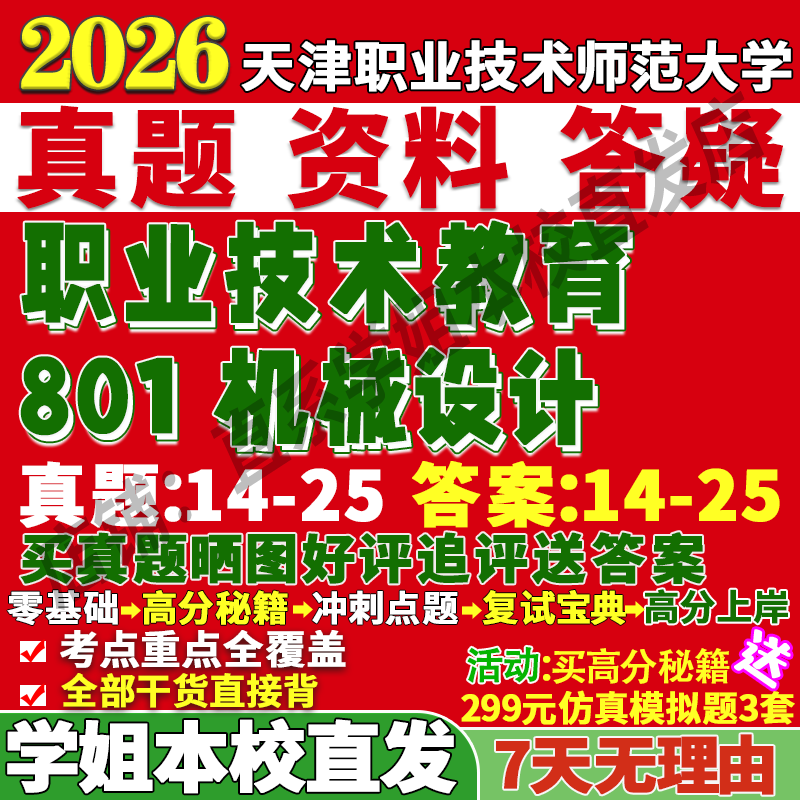 📚 2027天津职业技术师范大学801机械设计考研真题复试网课辅导考研复试辅导资料3套题考前冲刺