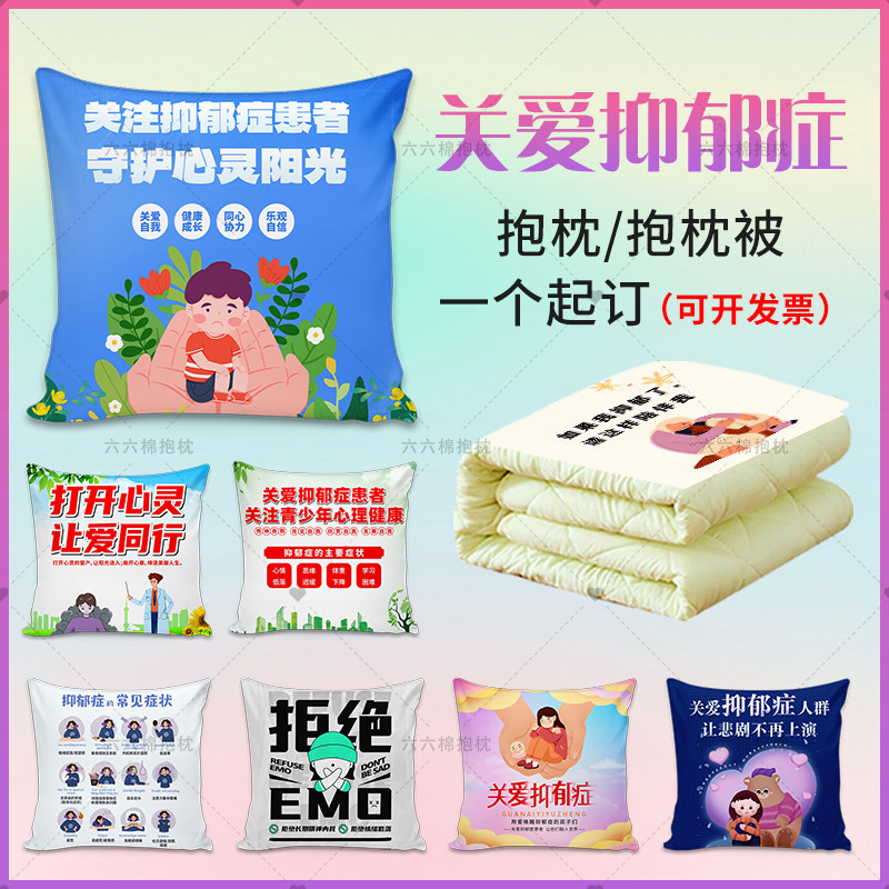 📚 关爱抑郁症科普心理健康主题宣传产后抑郁知识宣传礼品抱枕靠垫被