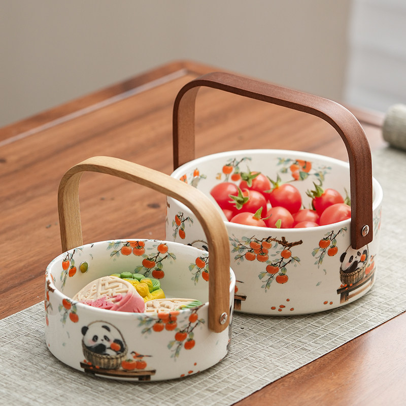📚 中古风陶瓷果篮手提篮下午茶点心摆盘家用零食水果收纳碗餐具摆件