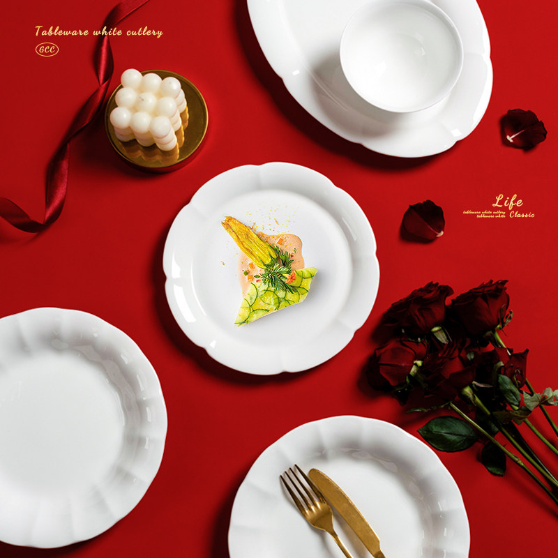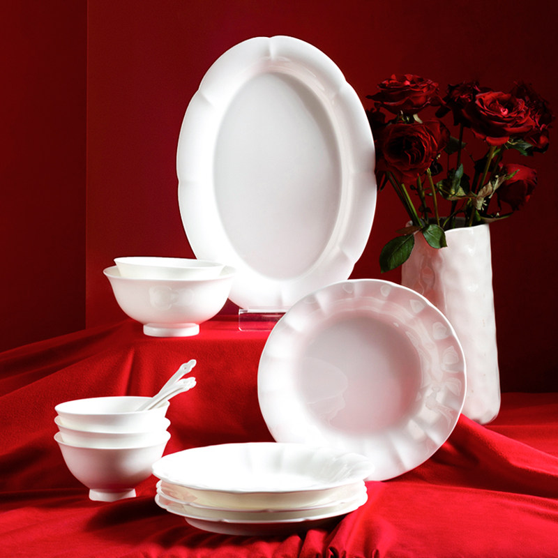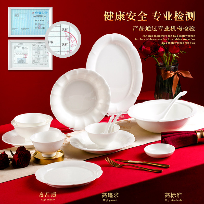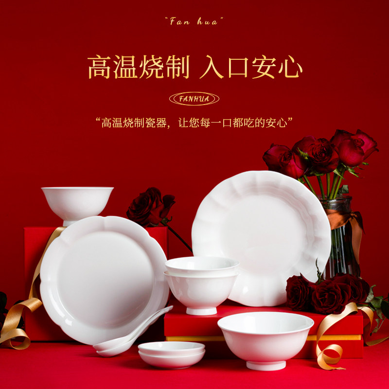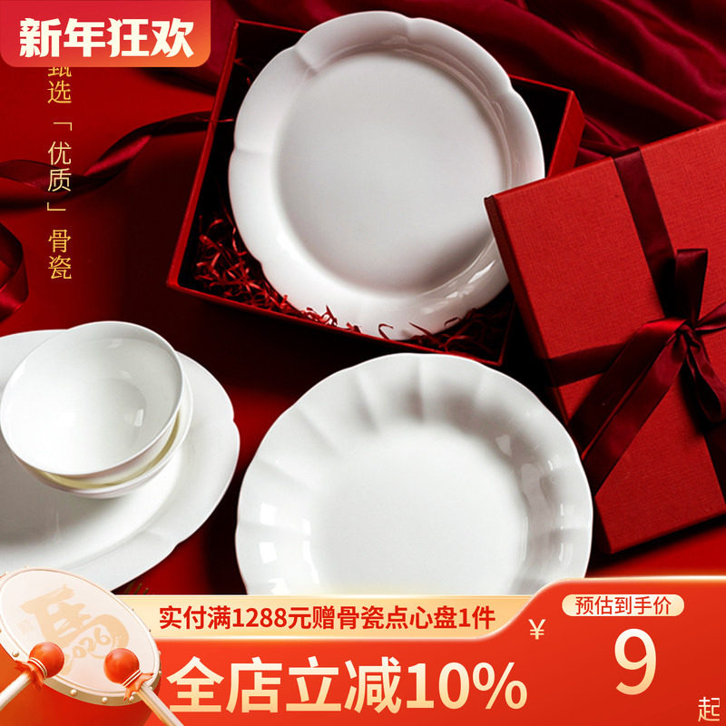 📚 高淳陶瓷繁华家用碗盘骨瓷浮雕米饭碗菜盘简约轻奢汤菜盘碗碟餐具