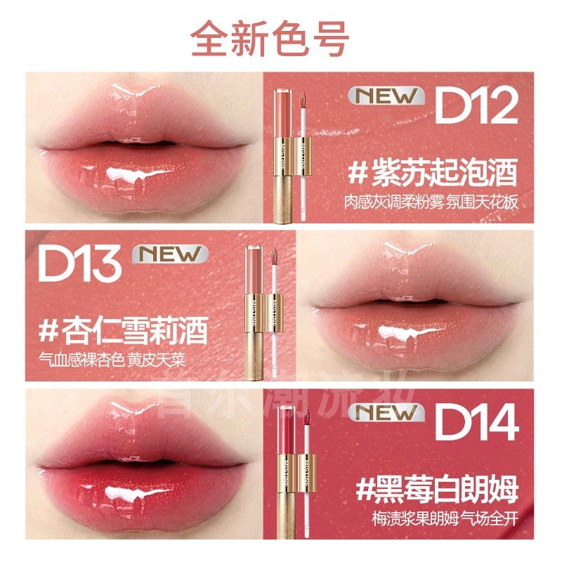 📚 mistine蜜丝婷双头唇釉nishuini带细闪d14冰糖草莓透明唇蜜叠涂女