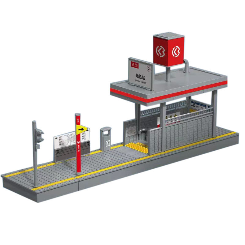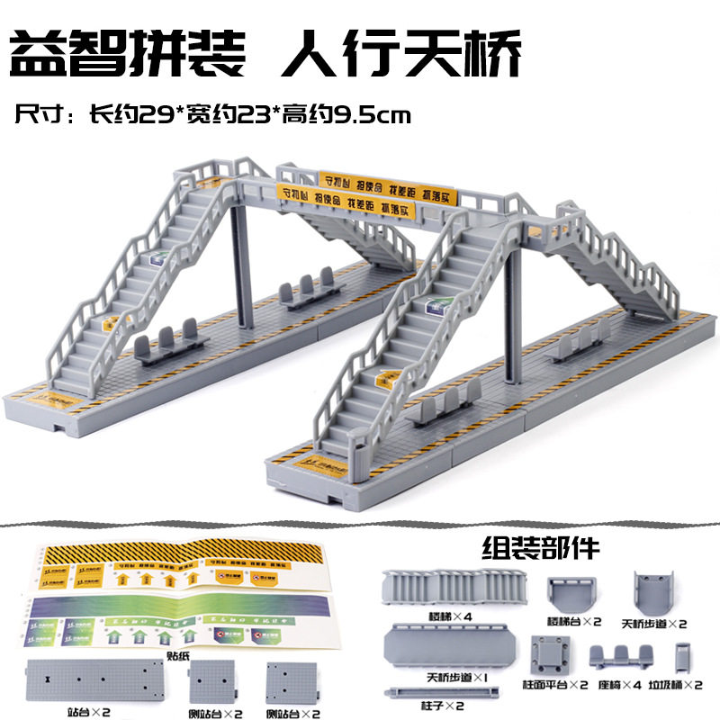 📚 地铁站台人行天桥模型公交巴士车站拼装玩具交通公路场景摆件儿童