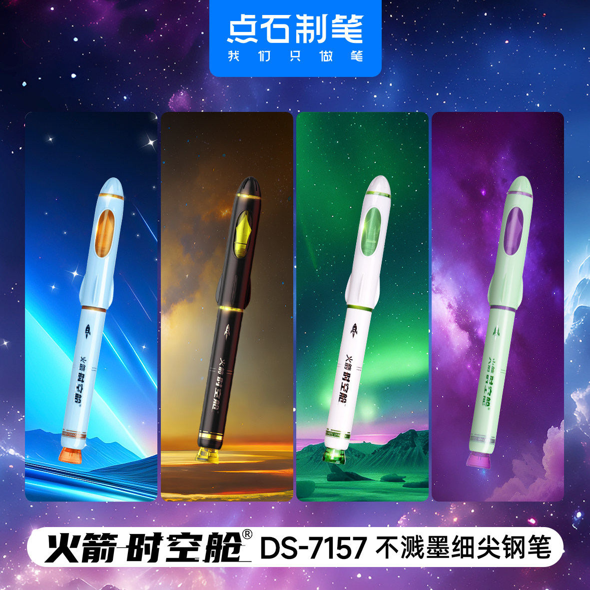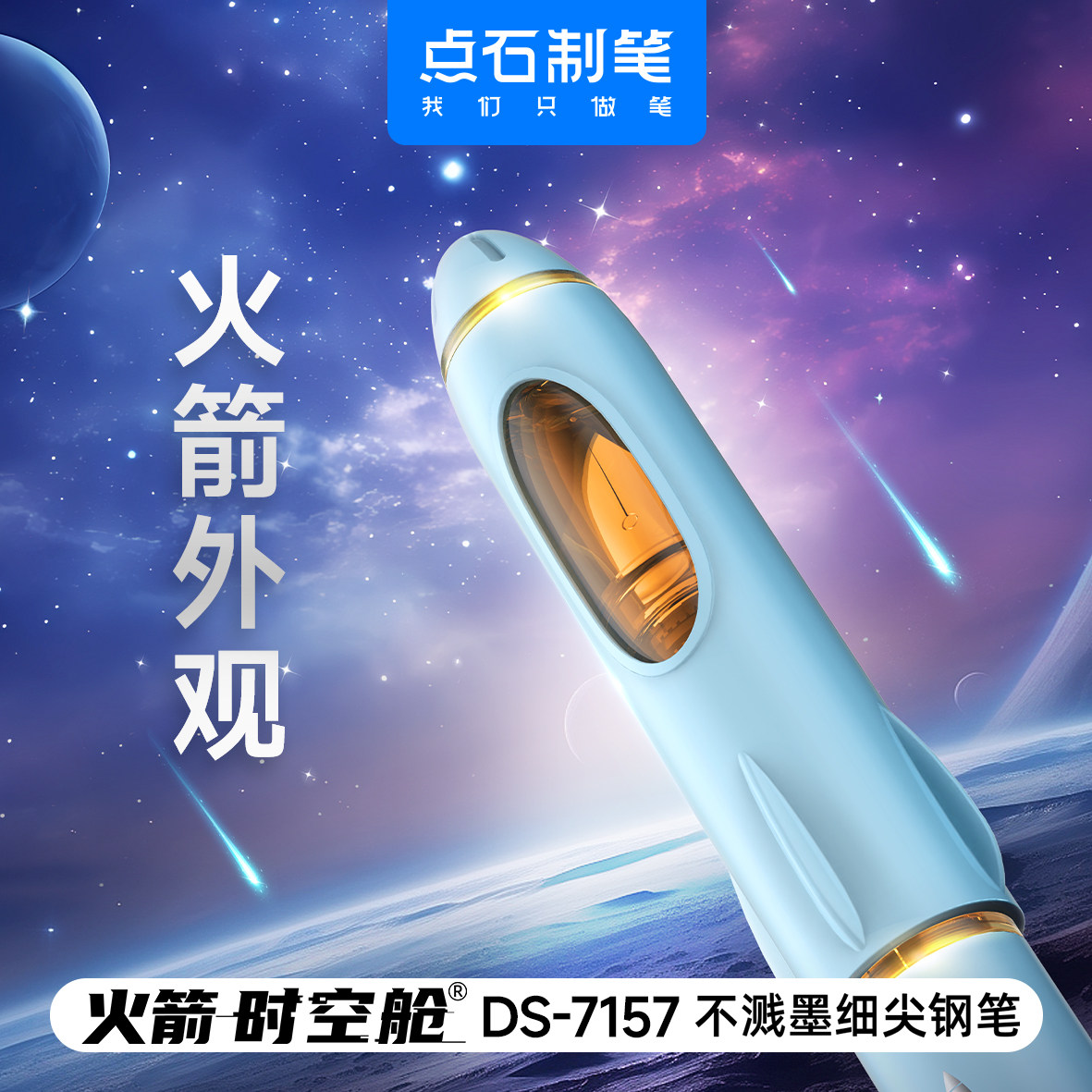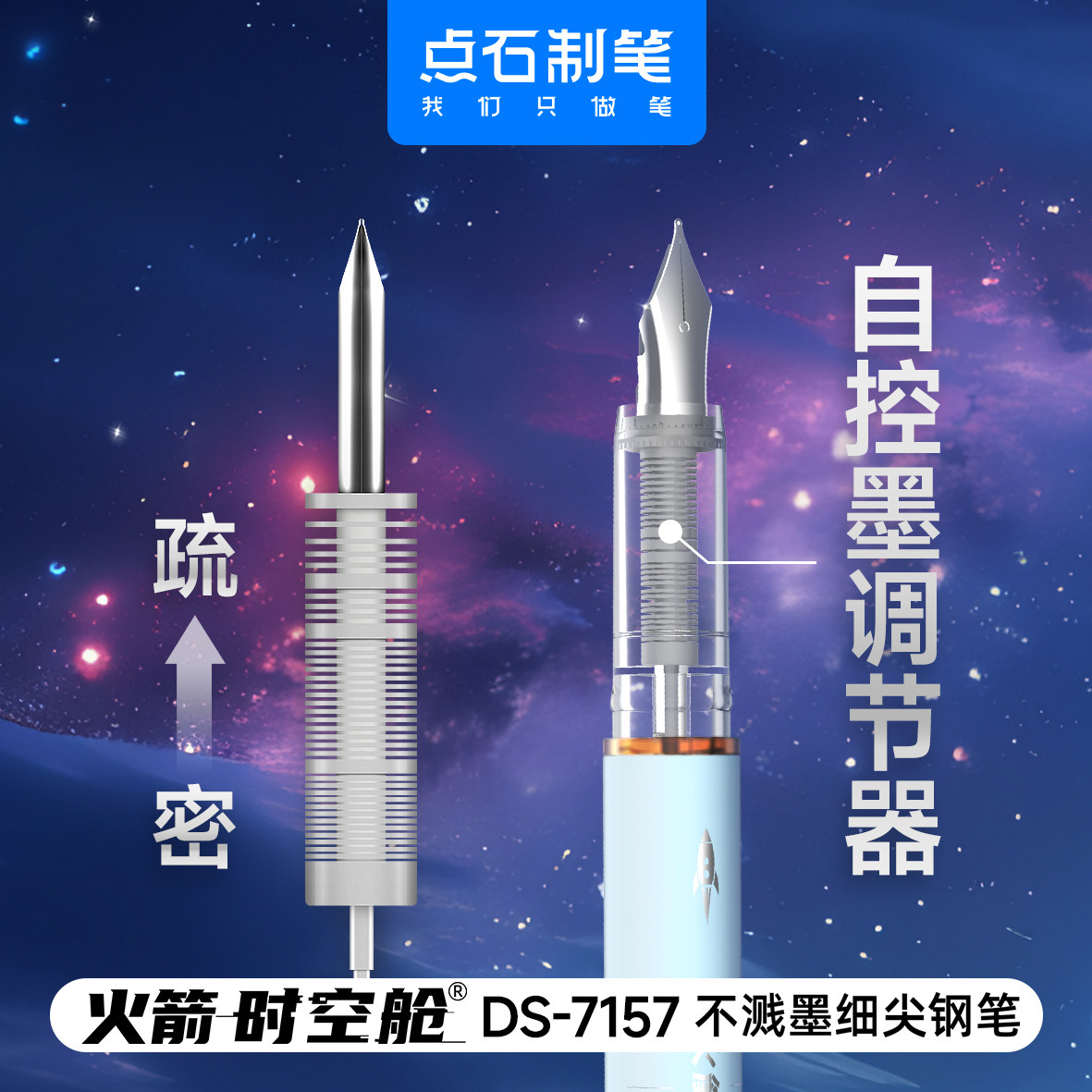 📚 点石火箭时空舱钢笔DS-7157不溅墨钢笔非热可擦明尖F尖小学生三年级专用练字男女生高颜值可换墨囊点石制笔