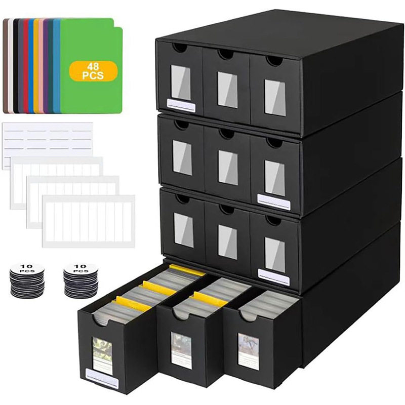📚 卡牌收纳盒带隔板展示窗标签抽屉宝可梦收集周边自印小卡套收藏盒