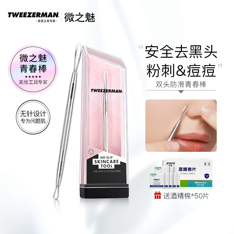 📚 微之魅TWEEZERMAN粉刺针压圈黑头针棒刮黑头挤痘痘工具美容院专用