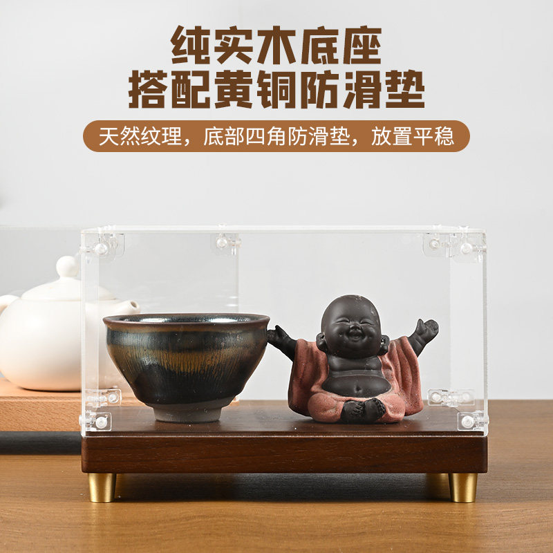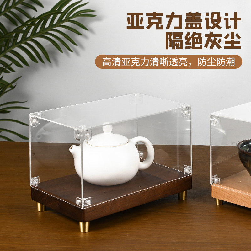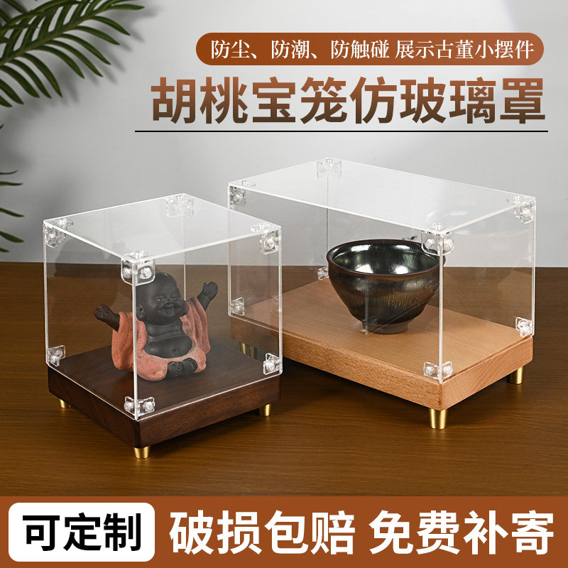 📚 胡桃木展示盒透明防尘罩子摆件文玩矿石模玩乐高展示架展示盒定制