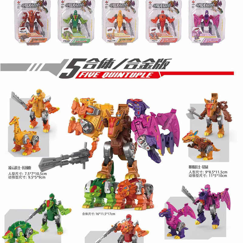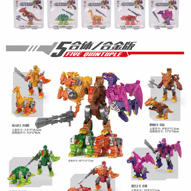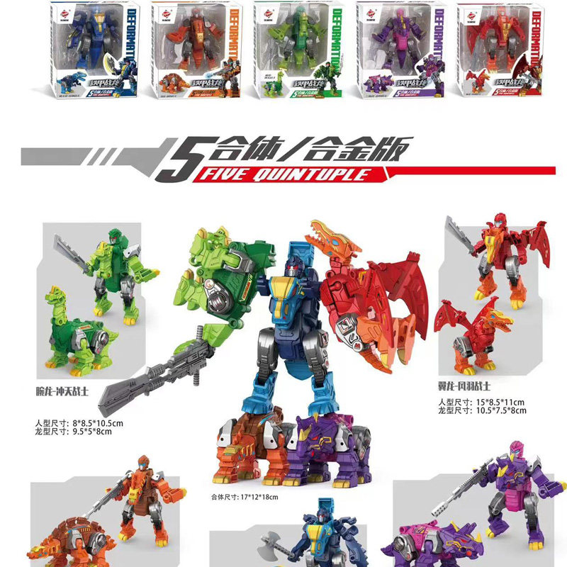 📚 儿童恐龙变形益智玩具机器人五合体机甲合金霸王龙钢索三角龙男孩