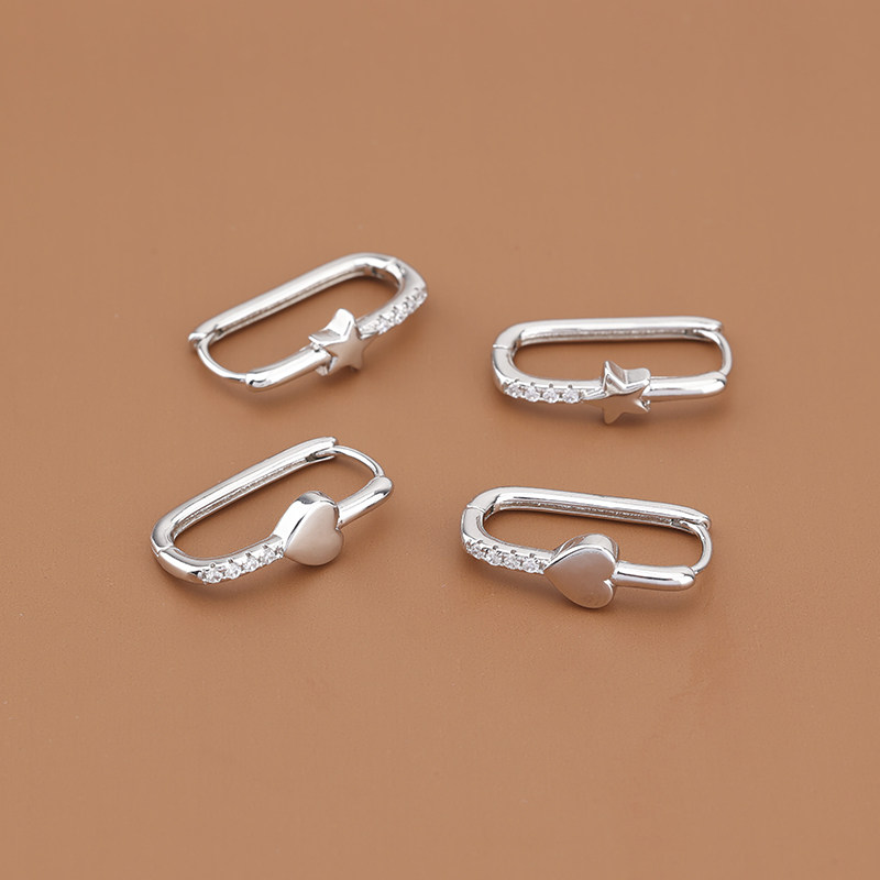 📚 s925银针镶钻U形耳扣女气质小众五角星耳环爱心耳圈简约冷淡风