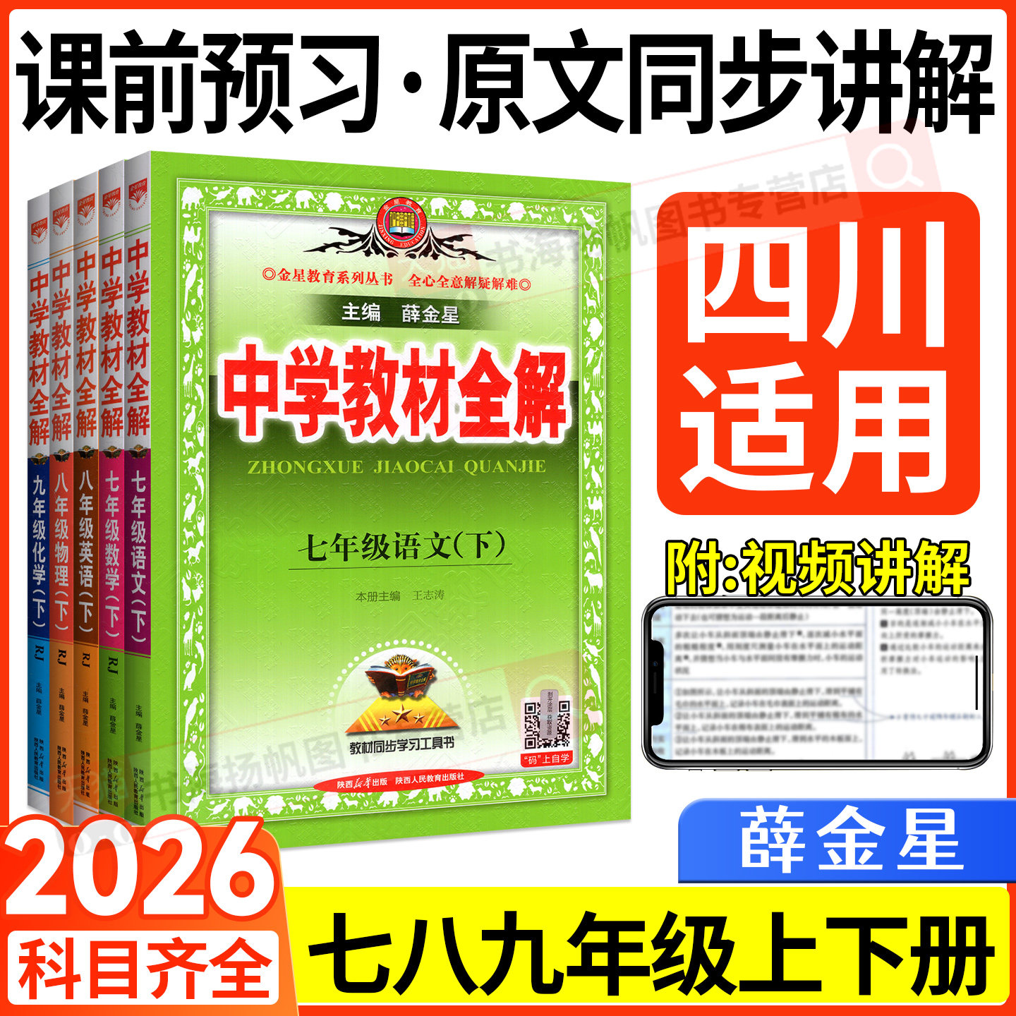 📚 四川适用!2026春中学教材全解初中七下八九年级下册全套语文数学英语物理政治历史人教版北师大华师薛金星7初一上8二同步课本解读