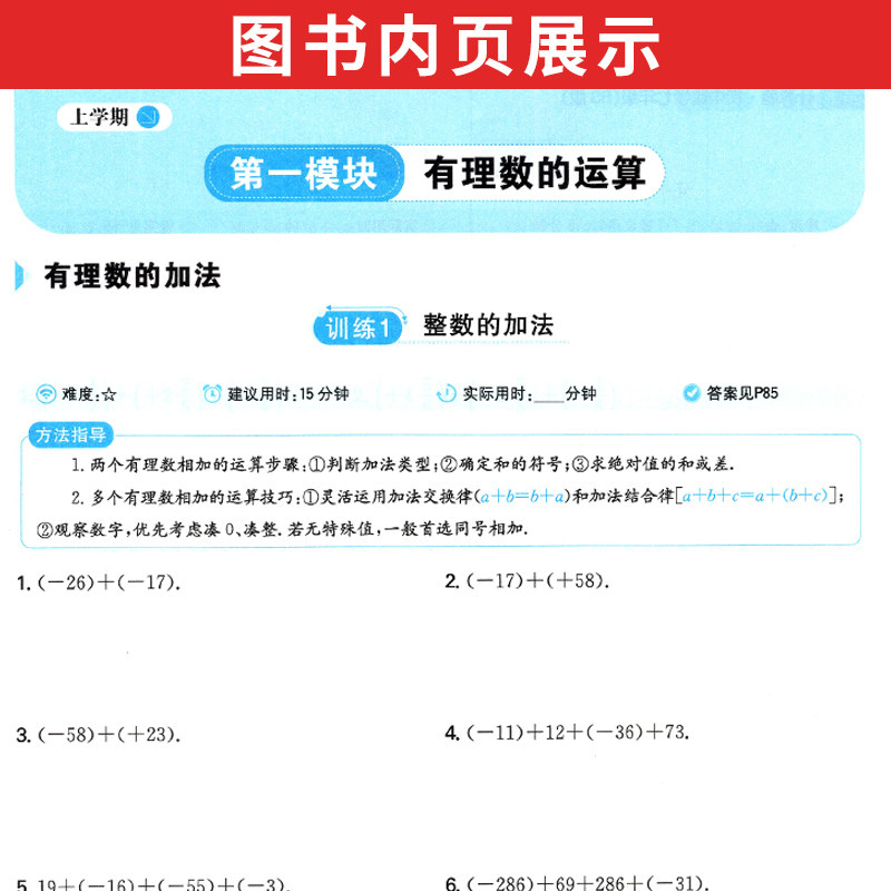 📚 一本七年级数学计算题专项训练北师版BS版 初一数学计算题专项训练上下册7年级初中数学同步训练基础提升练习题册计算达人能手高手