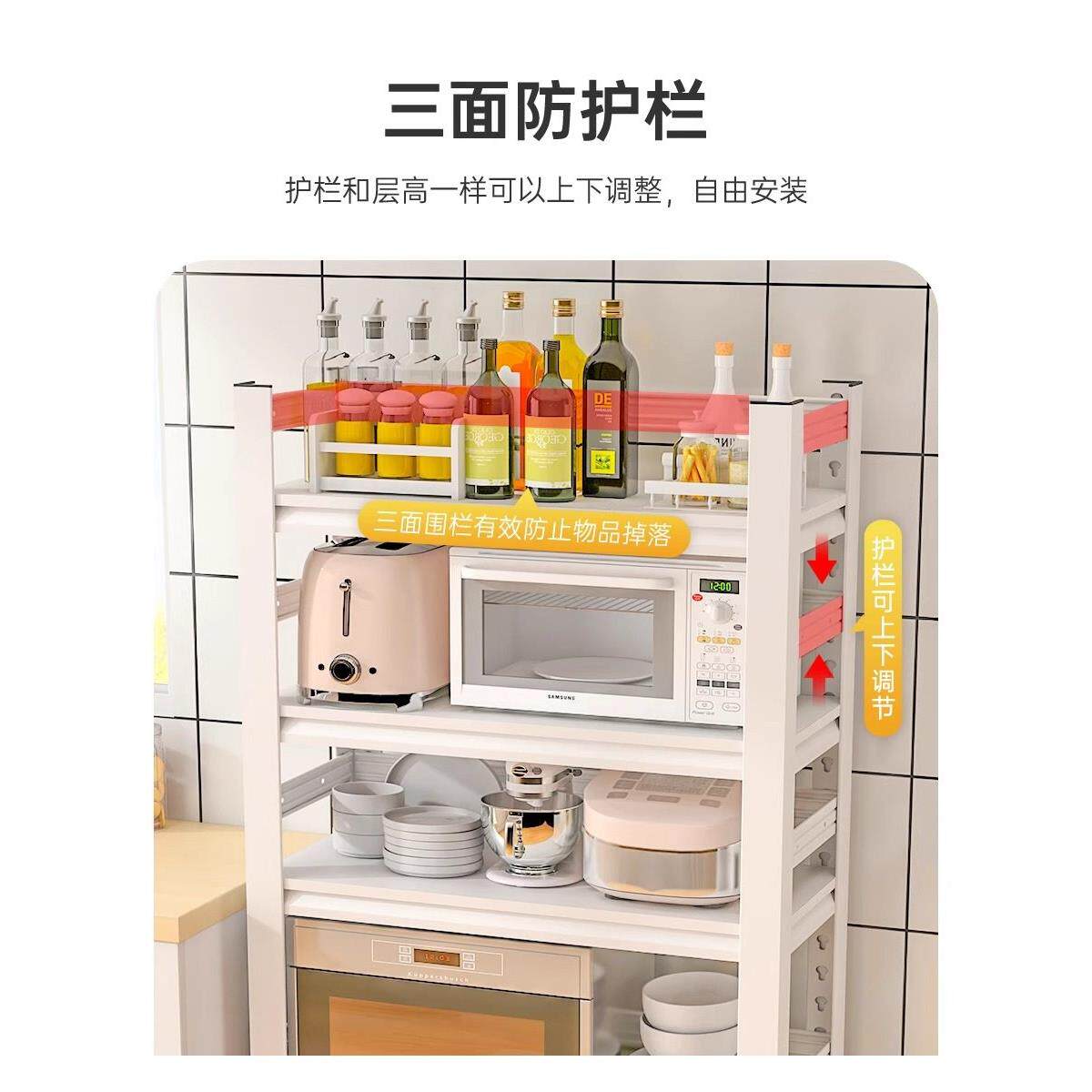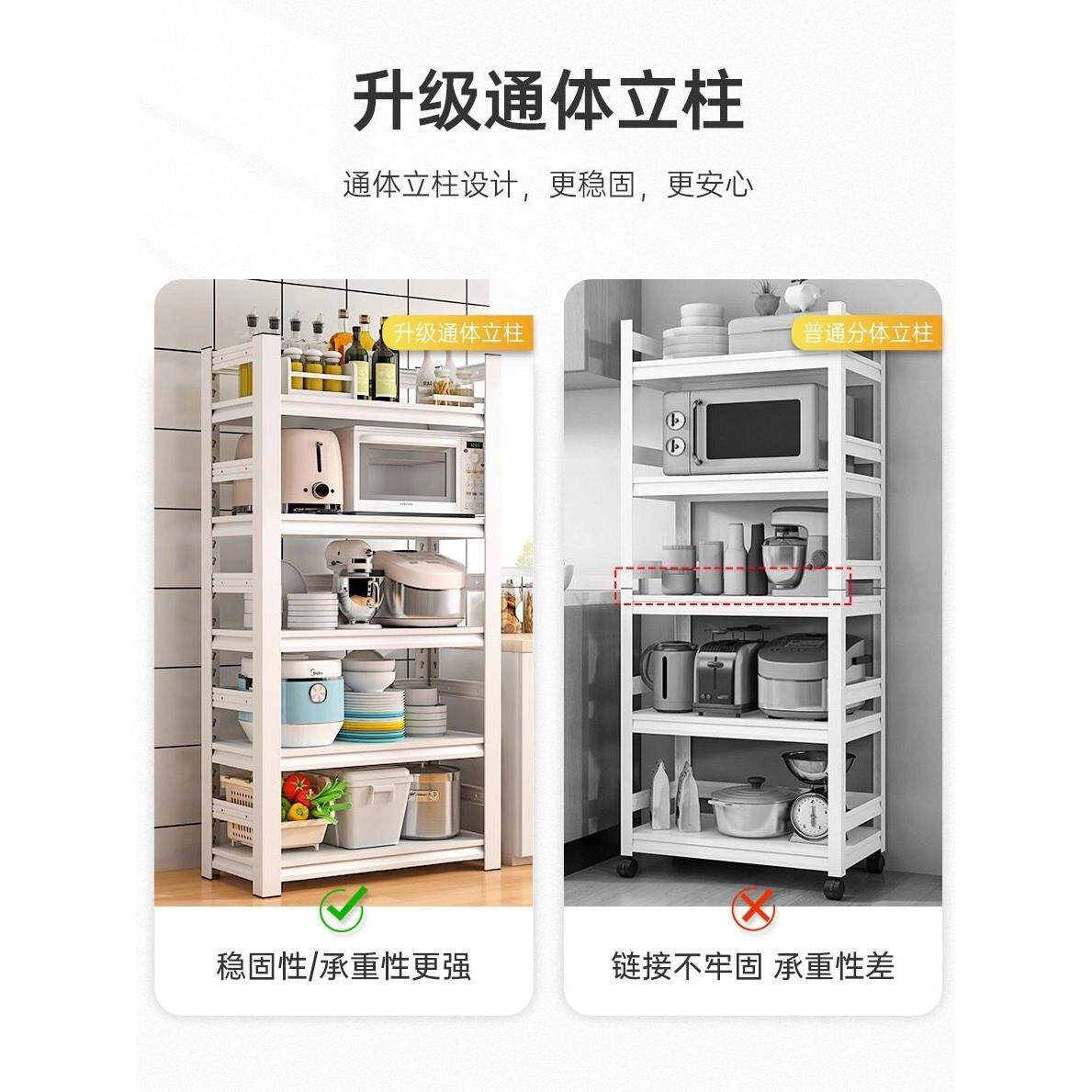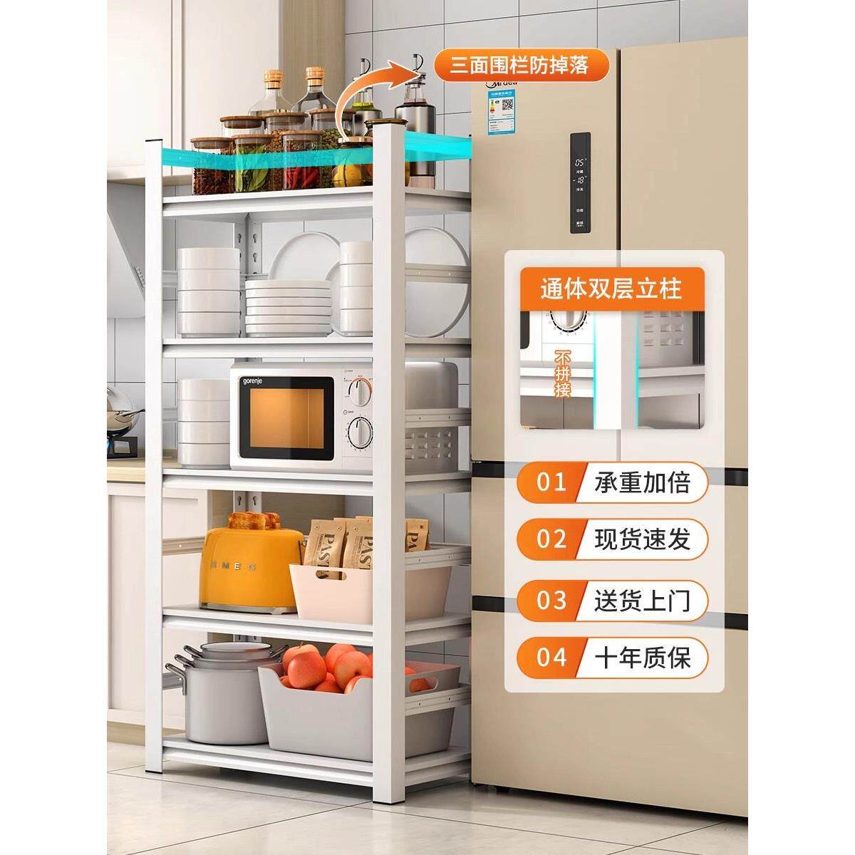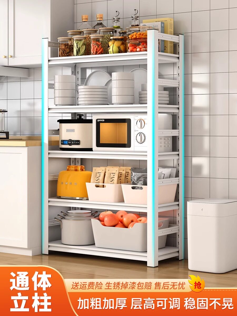 📚 德国厨房货架地板立式多层储物架微波炉家用白色货架货架储物架