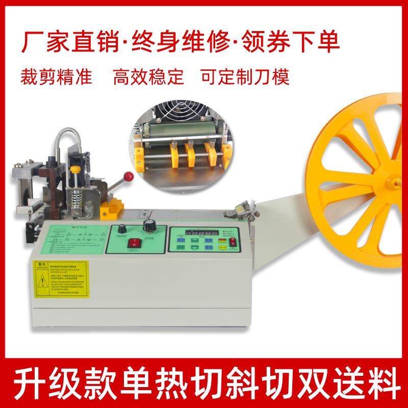 📚 全自动切带机丝带织带彩带热切机旋转头斜角双送料斜切织带机