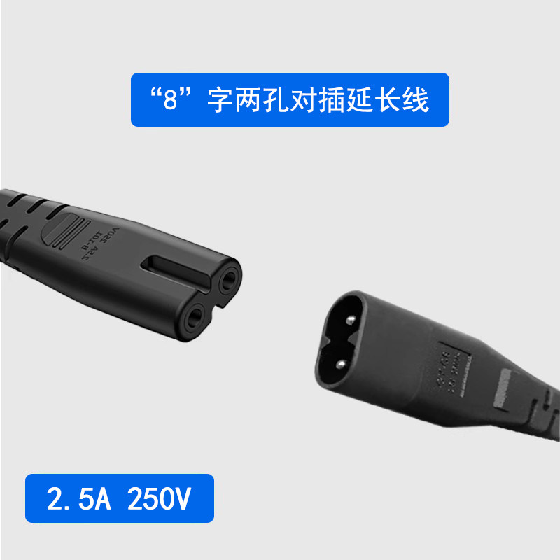 📚 IEC320 C7转C8八字公母带开关电源延长线 一分二直头双弯头转换线