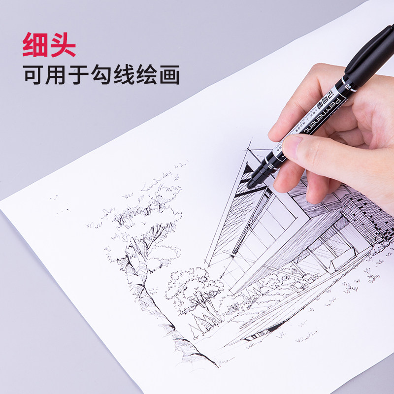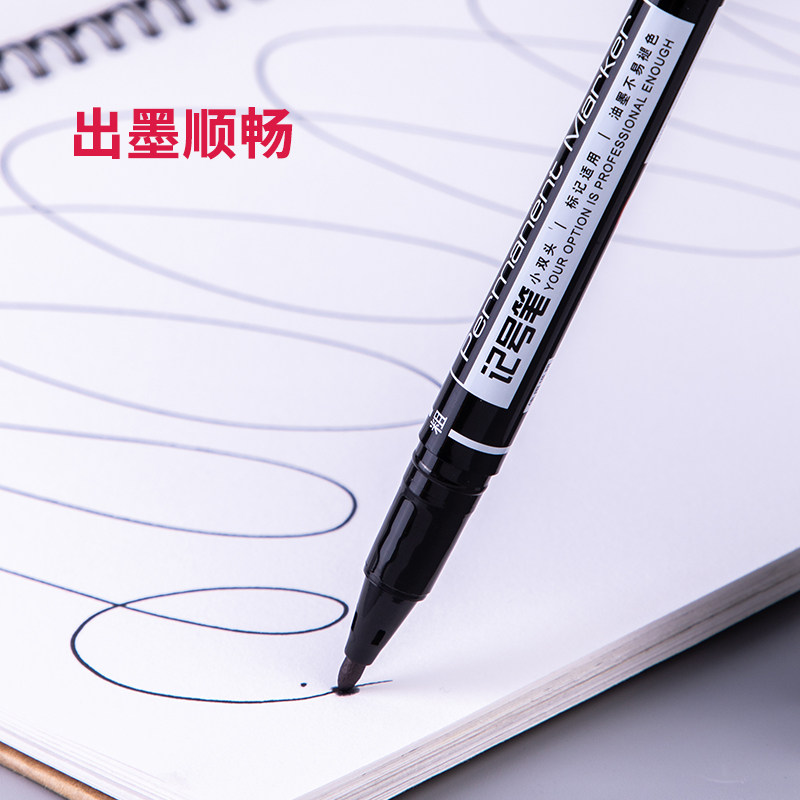 📚 得力记号笔6824小双头美术勾线笔黑色油性速干不掉色标记笔马克笔