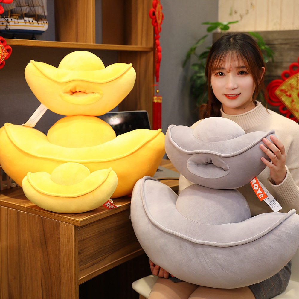 📚 仿真元宝公仔毛绒玩具金元宝玩偶暖手捂抱枕毯子拍照道具活动礼品
