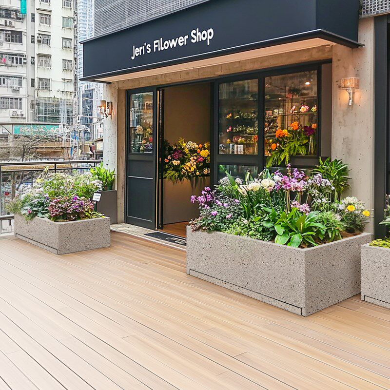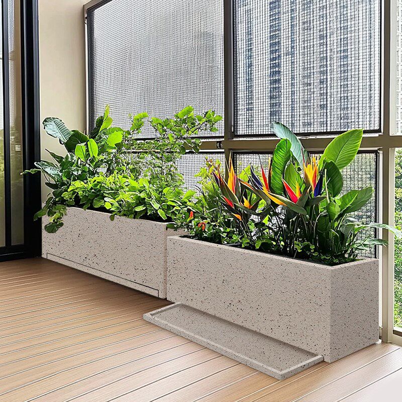 📚 水泥板花盆花箱户外庭院种植箱真石漆长方形花盆花槽自带接水托盘