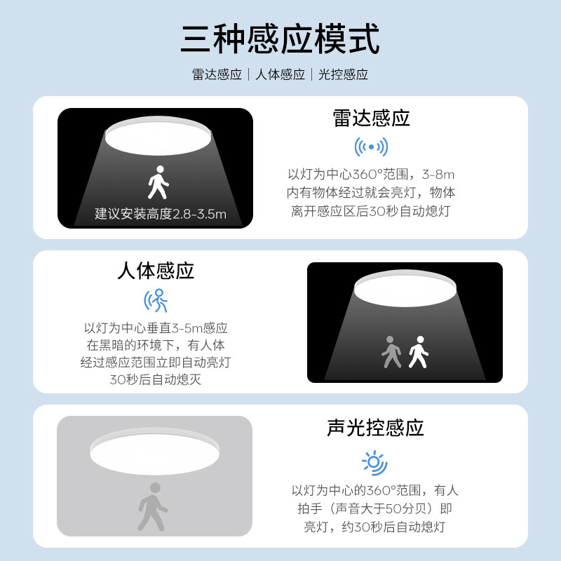 📚 led感应灯楼梯灯吸顶灯过道楼道走廊红外人体自动感应雷达声控灯