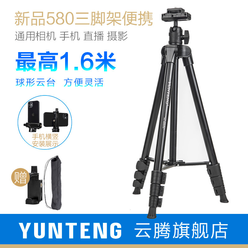 📚 云腾580三脚架球形云台便携1.6米高通用微单竖拍手机竖屏俯拍摄影淘宝抖音直播间自拍照相机支架多功能三角架