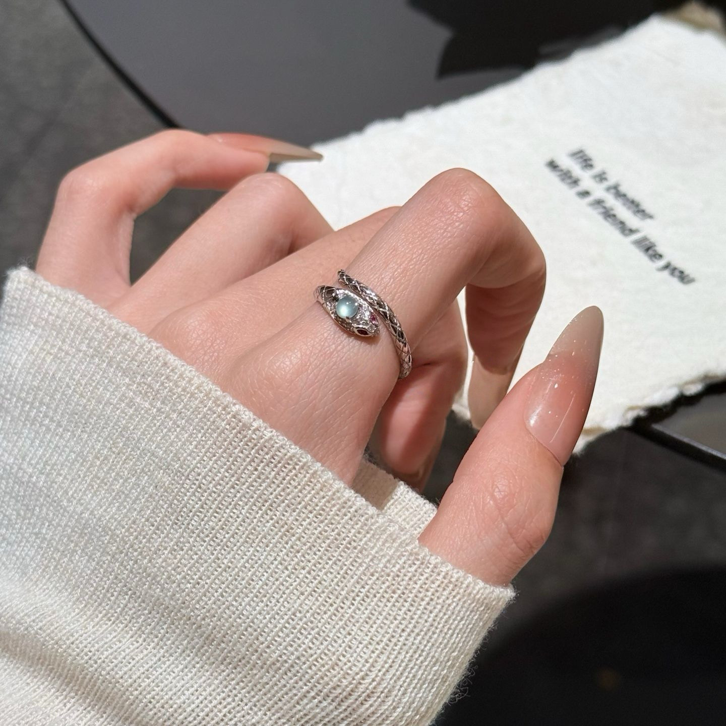 📚 925银灵蛇戒指女小众设计高级感蛇戒指蛇形小蛇灵蛇开口戒指她屿