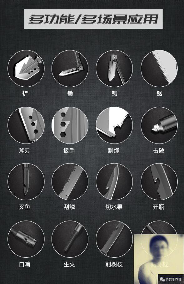 📚 老韩生存狂多功能兵工铲psk末日求生装备车载折叠锰钢兵工刀棍铲