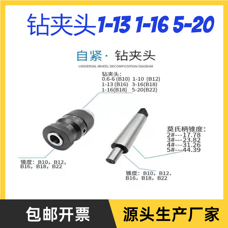 📚 莫氏锥柄钻夹头扳手式自紧重型2号3号4号5号铣床钻床台钻转夹子