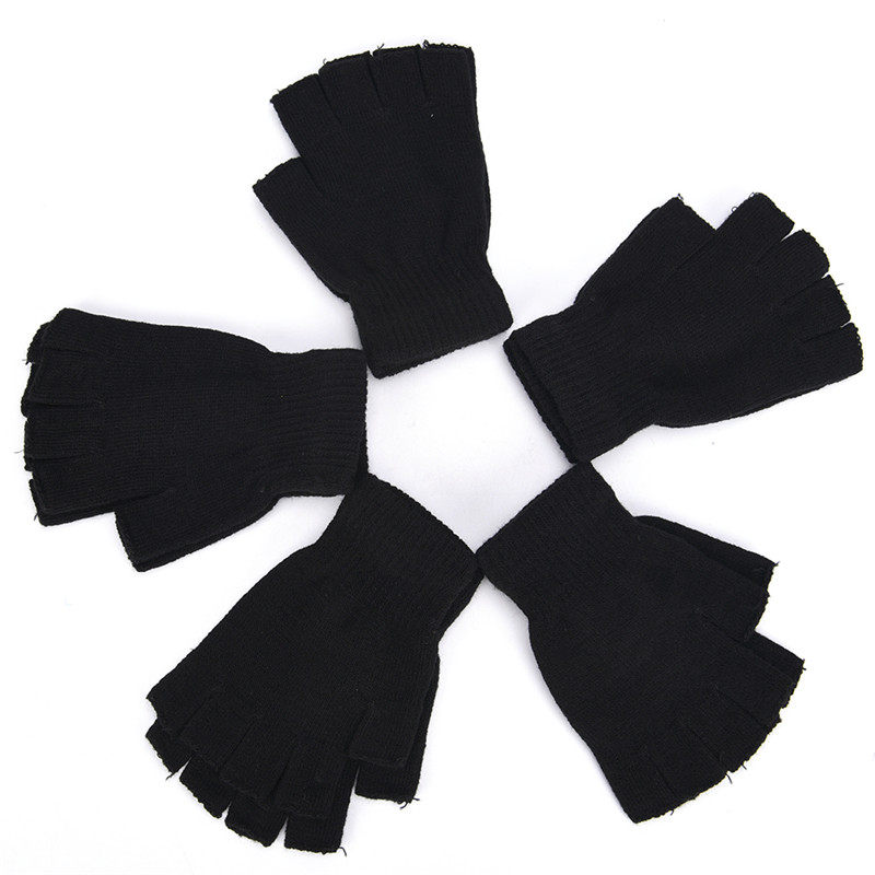 📚 1Pair Black Half Finger Fingerless Gloves For Women And Men